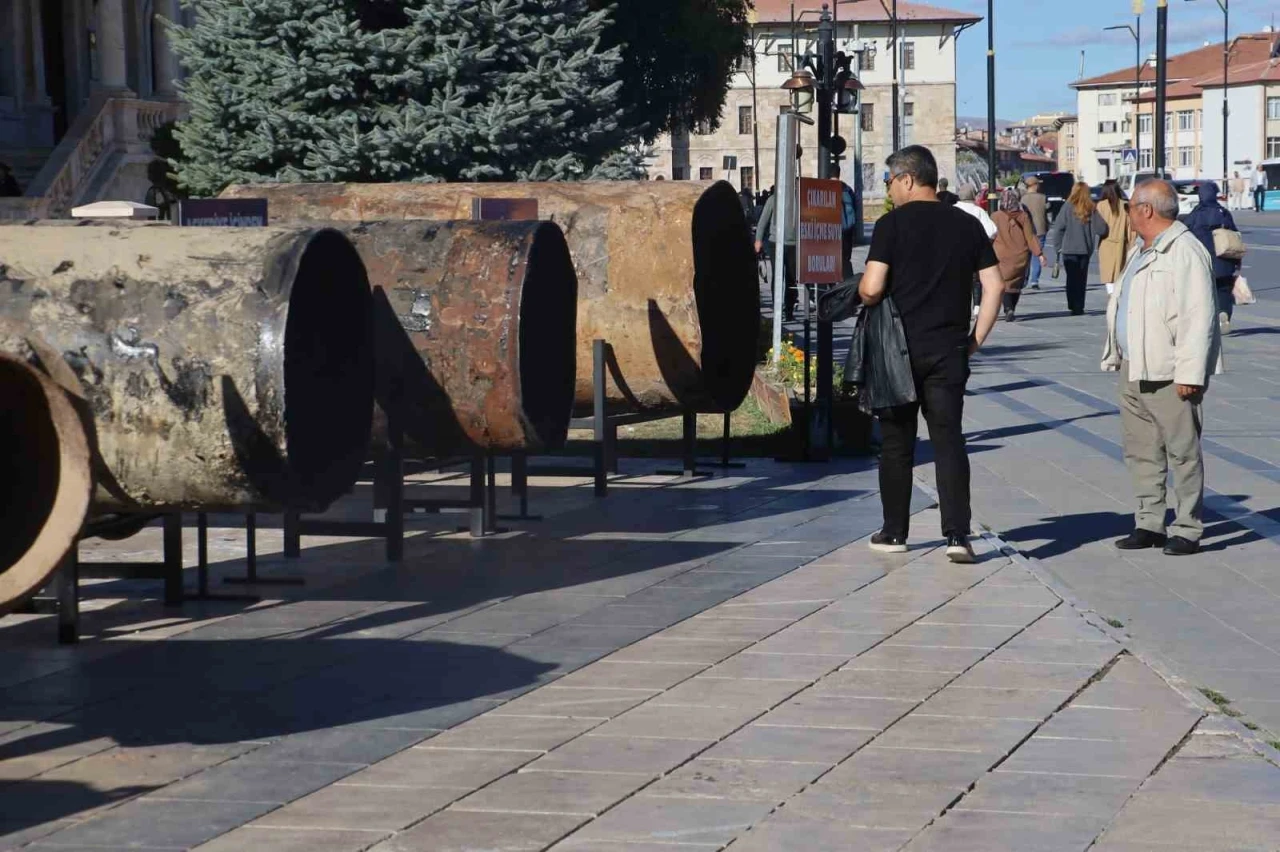 Sivas’ta yer altından çıkarılan borular kent meydanında sergileniyor