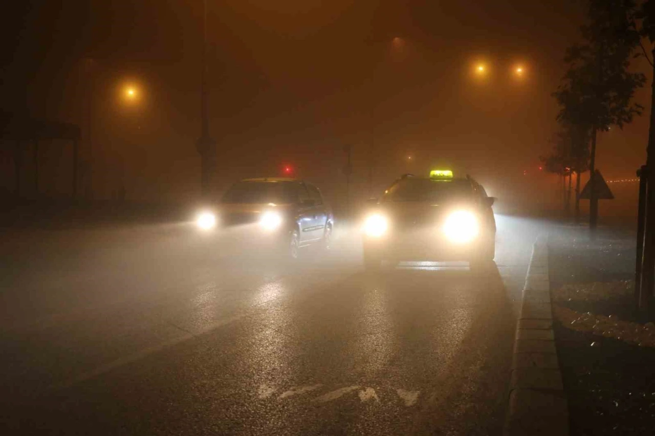 Sivas’ta sıcaklıkların eksi 2 dereceye kadar düşmesiyle birlikte akşam saatlerinde kent, görüş mesafesini neredeyse yok eden yoğun sis örtüsünün altında kaldı.