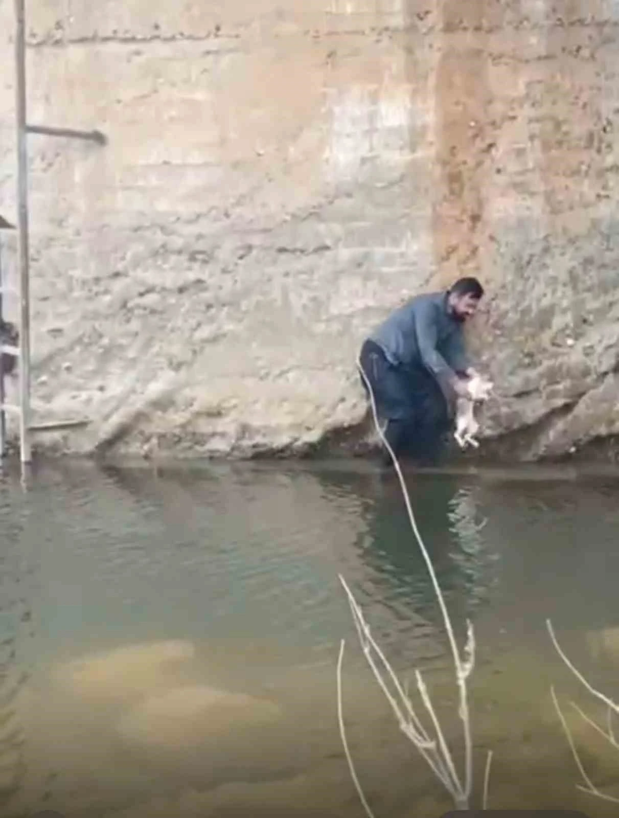 Şanlıurfa’nın Siverek ilçesinde derede mahsur kalan kedi, bölge sakinlerinin duyarlılığı sayesinde kurtarıldı.