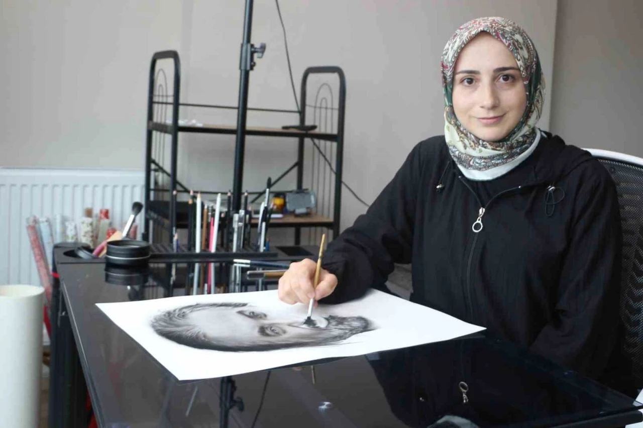 Rize’de yaşayan kadın ressam hiçbir teknik bilgi sahibi olmadan sadece hayal gücüyle yaptığı portrelerle hayran bırakıyor.