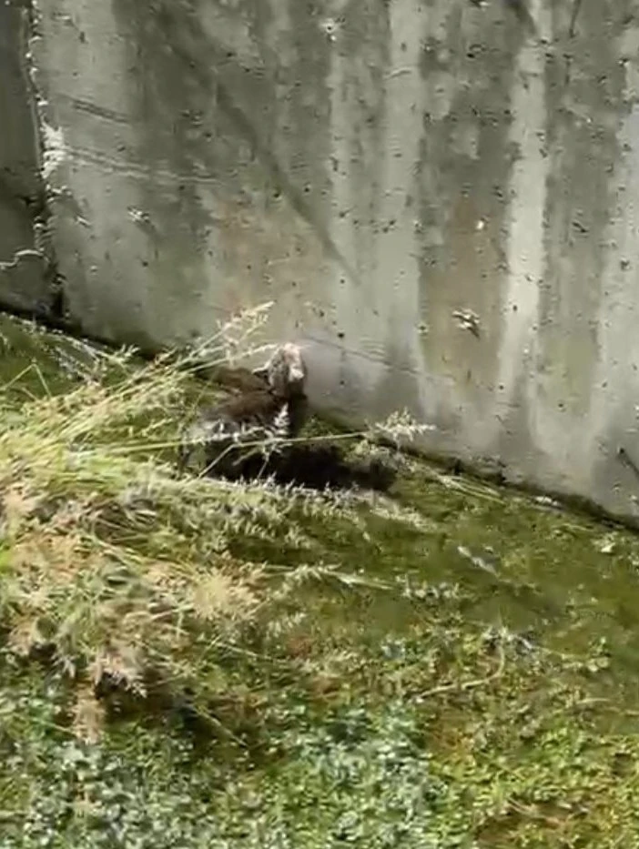 Ekiplerin kurtarıldığı yavru kedi, kurtarma çalışmalarını meraklı gözlerle izleyen annesinin yanına bırakıldı.