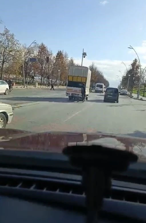 Hoca Ahmet Yesevi Bulvarı’nda saat 13.00 sıralarında patenli bir kişi, kamyonetin kapağına tutunarak yolculuk yaptı. Diğer sürücülerin şaşkın bakışları arasında pateniyle kayan şahıs, tepki çekti. Hem kendi hem de diğer sürücülerin canını hiçe sayan patenli şahsın tehlikeli yolculuğu cep telefonuyla görüntülendi.