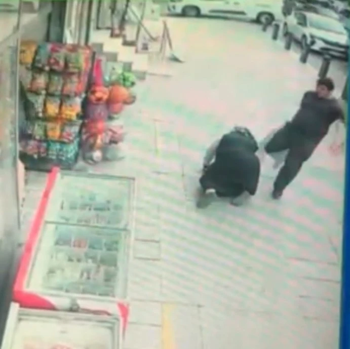 Çevredeki vatandaşların tepkisine neden olan saldırı anı, saniye saniye bir iş yerinin güvenlik kamerası tarafından kaydedildi. Görüntülerde şahsın acımasızca kadına saldırdığı ve yere düşürüp tekmelediği, yanından geçen bir vatandaşın ise umursamadan markete girdiği görüldü.