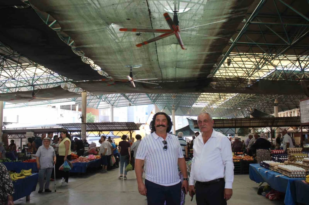Sultanhisar ilçe merkezimizde bulunan kapalı pazaryerine belediye tarafından 12 adet serinletici pervane takıldı. Sultanhisar’da yapılan sistem sayesinde Cuma günleri kurulan pazarda esnaf artık rahat bir nefes alacak. Çalışmaları yerinde inceleyen Sultanhisar Belediye Başkanı Osman Yıldırımkaya, küresel ısınma nedeniyle oluşan aşırı sıcaklardan bunalan esnafımıza ve alışverişe gelen vatandaşlarımıza daha rahat ve ferah bir ortam sunmak amacıyla bu hizmeti verdiklerini, belediyemize olan maliyetin sadece Sultanhisar için 700 bin TL civarında olduğunu, aynı hizmetin Atça ve Salavatlı kapalı pazaryerlerinde de en kısa sürede faaliyete geçeceğini belirtti.