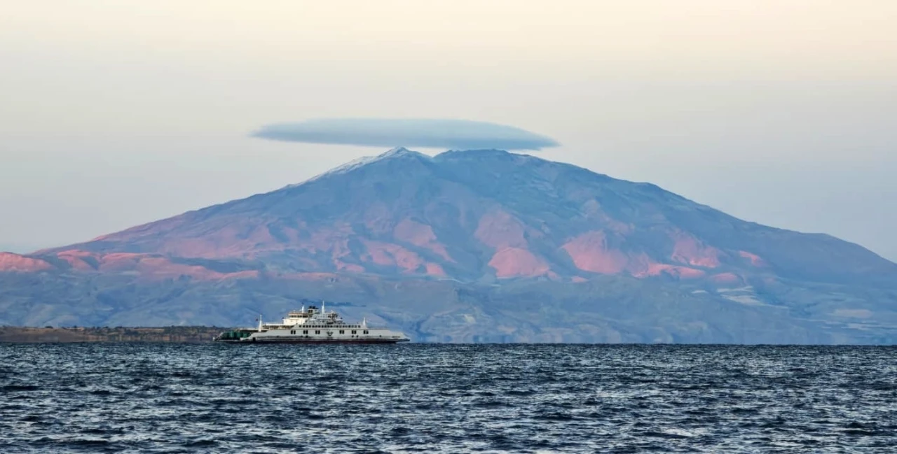 Bitlis’in görkemli simgelerinden biri olan ve 4 bin 58 rakımı ile Türkiye’nin üçüncü yüksek dağı olan Süphan Dağı, doğa tutkunlarını büyüleyen eşsiz bir manzaraya sahne oldu. Akşam saatlerinde dağın zirvesini saran mercek bulutu, Tatvan sahilinden fotoğraflandı. Van Gölü’nün masmavi suları ve üzerinde seyreden feribotla birlikte Süphan Dağı’nın manzarası hayranlık uyandırdı.