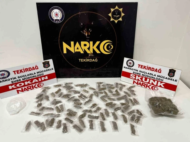 Tekirdağ’ın Süleymanpaşa ilçesinde durdurulan şüpheli araçtan skunk ve kokain ele geçirildi.