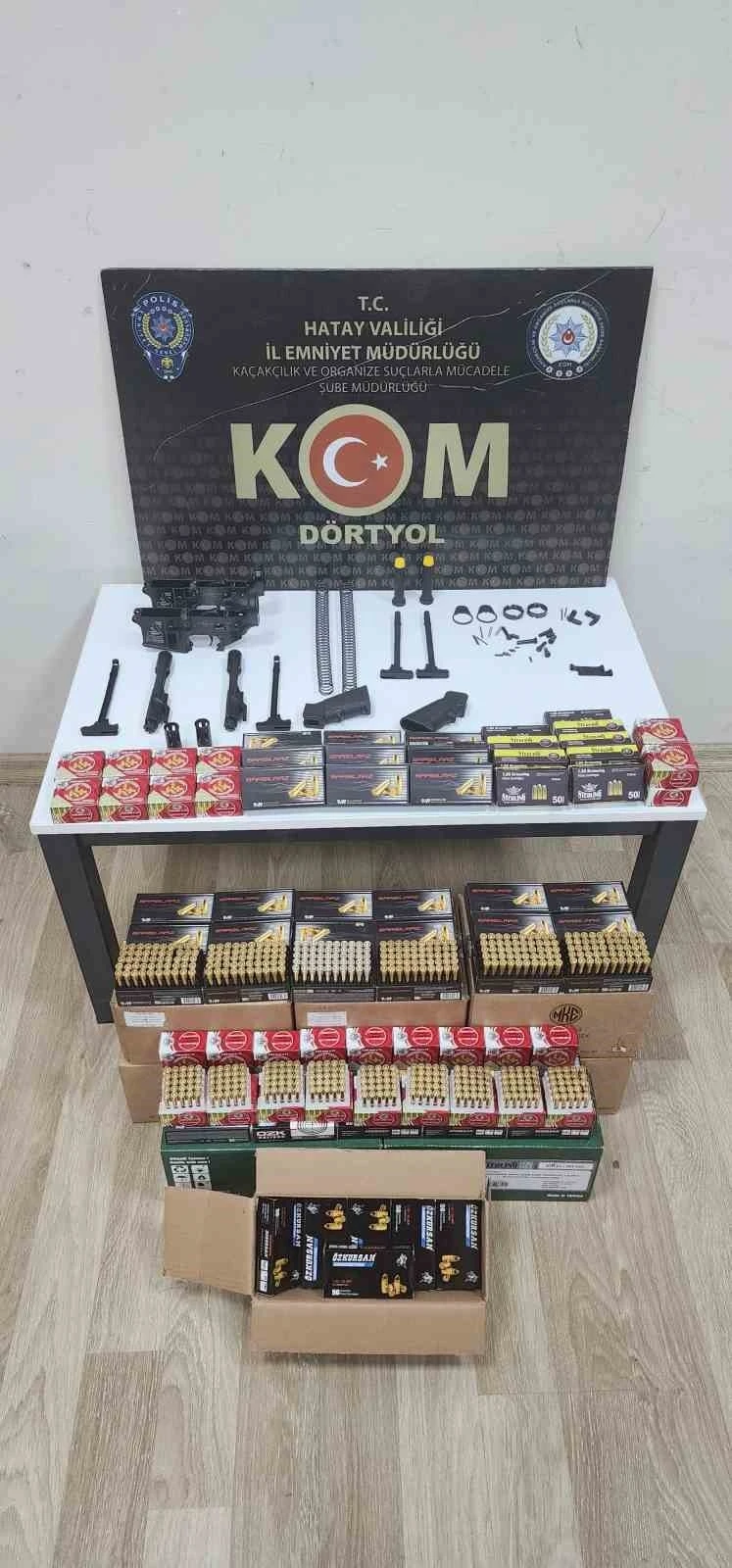Hatay Emniyet Müdürlüğü ekipleri, şehrin güvenliği ve huzurunu sağlamak amacıyla asayiş çalışmalarına aralıksız devam ediyor. Dörtyol ilçesinde 11 Kasım tarihinde yapılan kargo takibi sonucunda; bir şahıs ve ikametinde arama yapıldı. Yapılan aramada; 11 bin 850 fişek ile 45 muhtelif silah parçaları ele geçirildi. Olayla ilgili olarak E.K. hakkında 6136 sayılı kanuna muhalefetten işlem yapılarak adli makamlara sevk edildi.