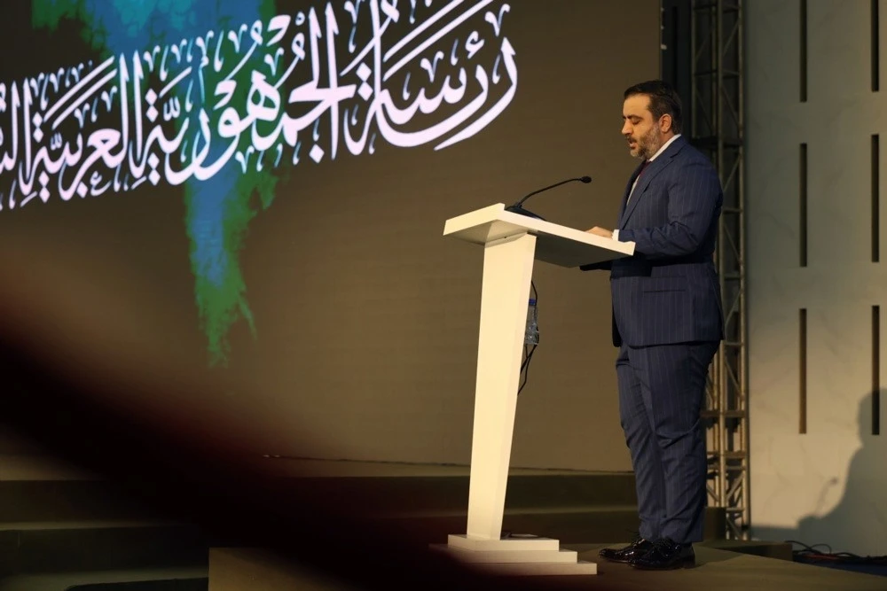 Törende konuşan Suriye Dışişleri Bakanı Esad Hasan Şeybani ise "Bu logo tüm Suriyelilere aittir. Bugün, eski rejimin kültürünün gerçek anlamda sona erdiği ve Suriyelilerin hak ettiği yeni bir başlangıcın günüdür. Buraya, şehitlerimizin kanı sayesinde geldik. Onların ailelerine saygı ve başsağlığı sunuyorum" dedi. Şeybani, bu başarıyı şehitlerin fedakârlıklarına borçlu olduklarını vurguladı. Hamza El-Hatib’e Vefa