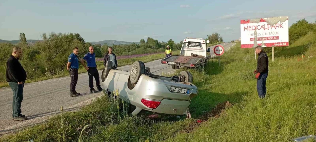 Direksiyon hakimiyetini kaybeden sürücü kullandığı araçla takla attı. Kazada sürücü hafif şekilde yaralandı.