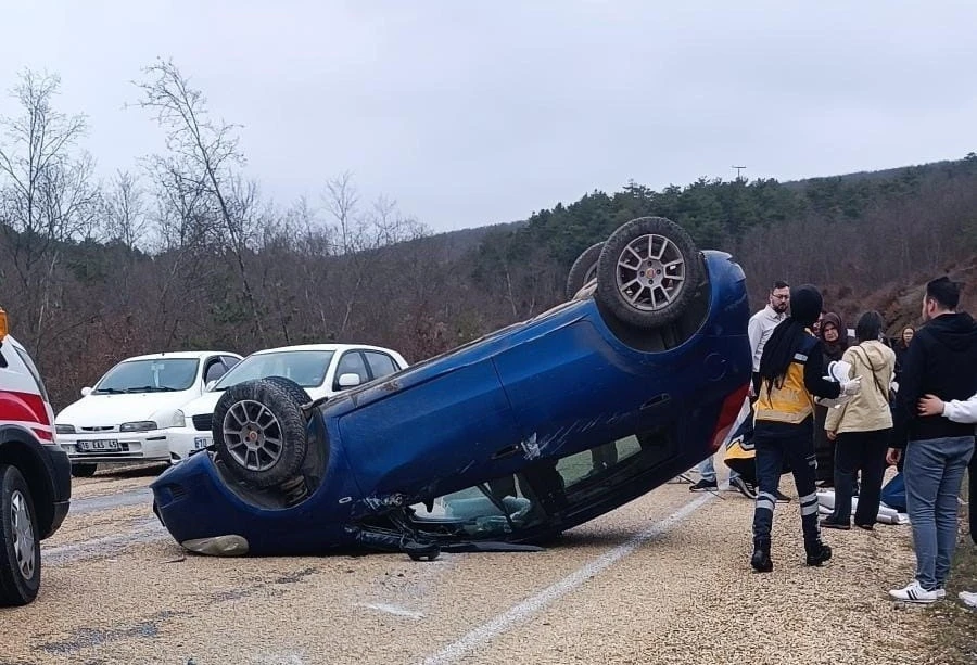 Bilecik’te kontrolden çıkan otomobil takla atarken kazada 2 kişi yaralandı.