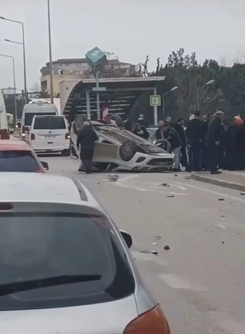 Bursa’da sürücüsünün kontrolünden çıkan otomobil takla attı. Sürücü şans eseri burnu bile kanamadan kurtuldu.