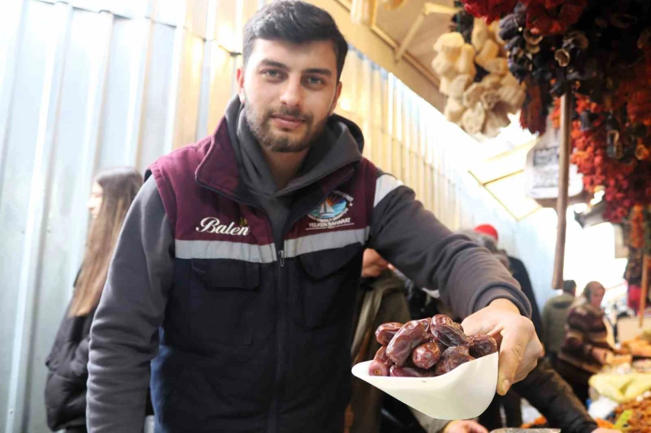 "Ramazan hareketliliği 2 hafta önceden başladı. Vatandaşlar daha çok İran hurmasını tercih ediyor. Hem lezzetli yem yumuşak. Fiyatı da uygun. Hurma fiyatları 80 TL’den başlıyor 400 TL’ye kadar çıkıyor. 10 çeşit hurmamız var."