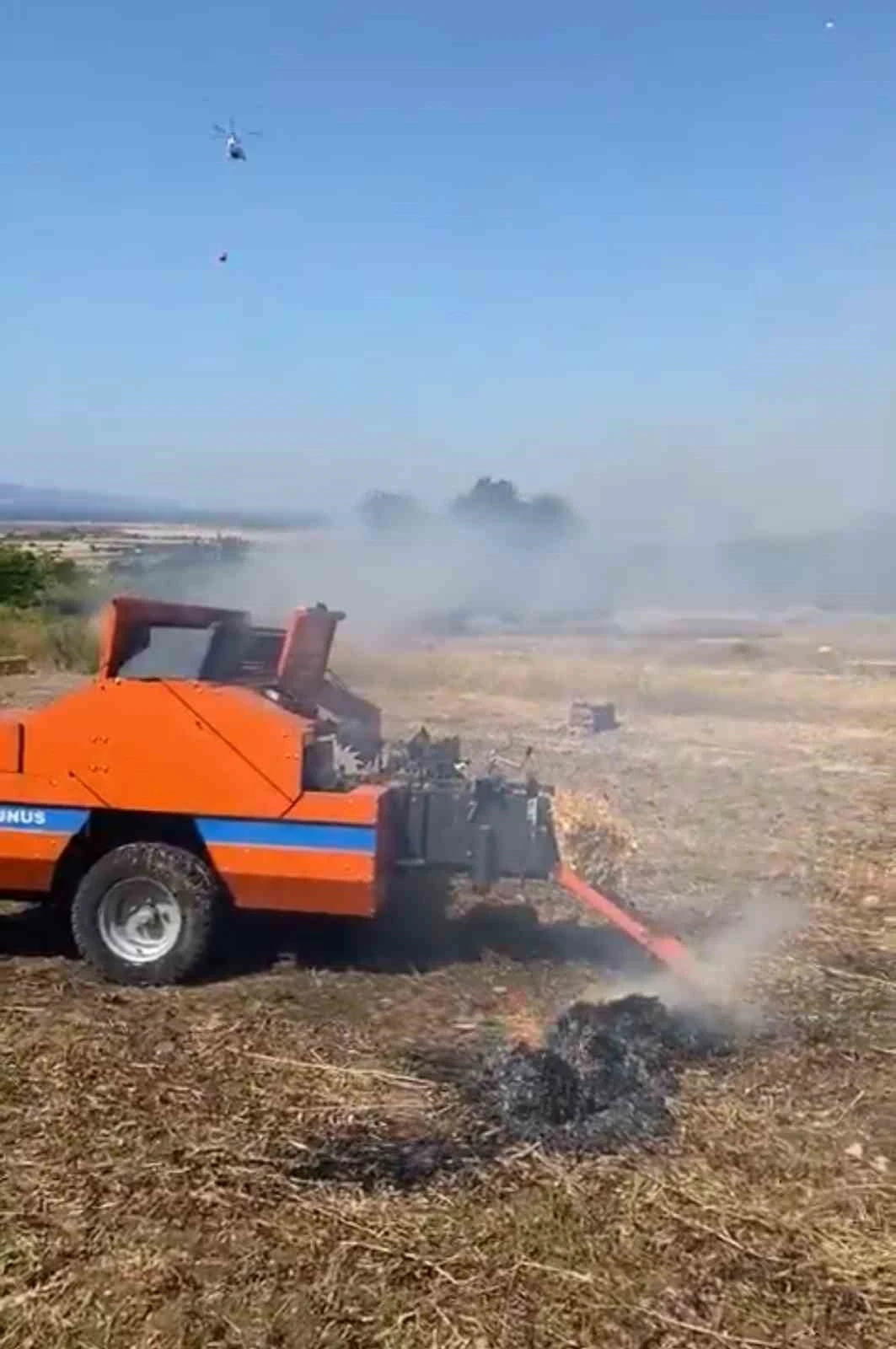 Çanakkale Özbek köyünde tarım arazisinde çıkan yangın rüzgarın da etkisiyle ormanlık alana sıçradı. Ekiplerin havadan ve karadan müdahalesiyle söndürülen yangının saman balya makinesinden çıktığı tespit edildi.