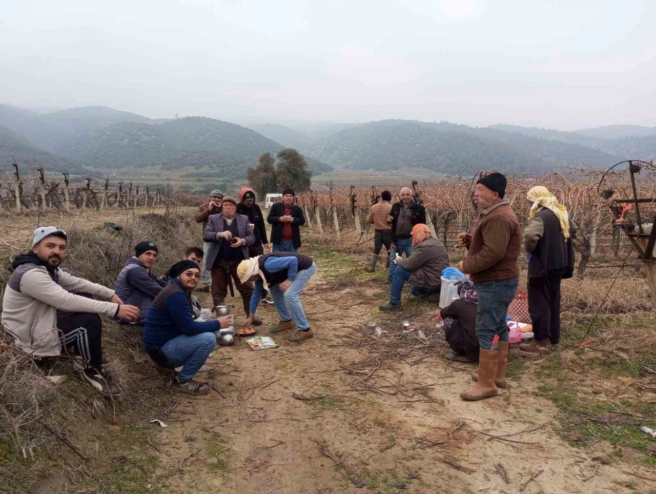 Kadın tarım işçilerinin günde 850 lira yevmiye aldığını kaydeden dayıbaşı Necati Coşkun, "Havalar ılık geçiyor bu nedenle bağların kışlık çalışmaları aksamadan yapılıyor. Kimi yerlerde bağlarda erken uyanma görmekteyiz. Badem, erik ve kayısı ağaçları çiçekleri açtı. Bahar havasında bağlarda ve tarlalarda işçi arkadaşlarımız rahat çalışma imkanı buluyorlar." dedi.