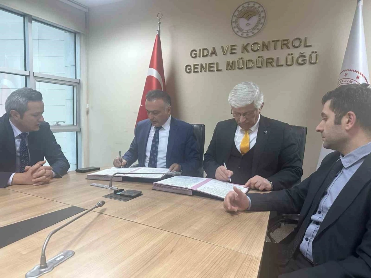 Tarım ve Orman Bakanı İbrahim Yumaklı’nın tensipleri ile Gıda ve Kontrol Genel Müdürlüğü ve Türk Veteriner Hekimleri Birliği arasında Koyun ve Keçi Türü Hayvanların Küpelenerek Kayıt Altına Alınması ve Programlı Aşılama Yetkisinin Devrine İlişkin protokol imzalandı.