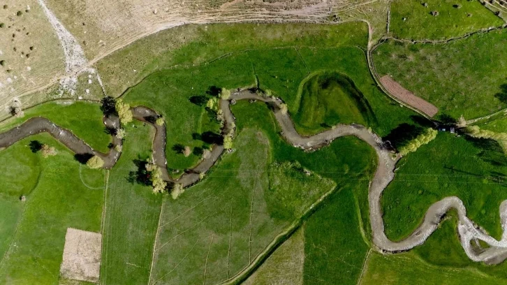 Bahar ayının gelmesiyle birlikte yeşilliklerin canlanması ile birlikte kıvrak şekilde uzayan menderesler, drone ile görüntülendi. Yılın büyük bölümünde karla kaplı olan Güzeldere menderesleri, havalarında yavaş yavaş ısınmasıyla güzellikleriyle dikkati çekiyor.