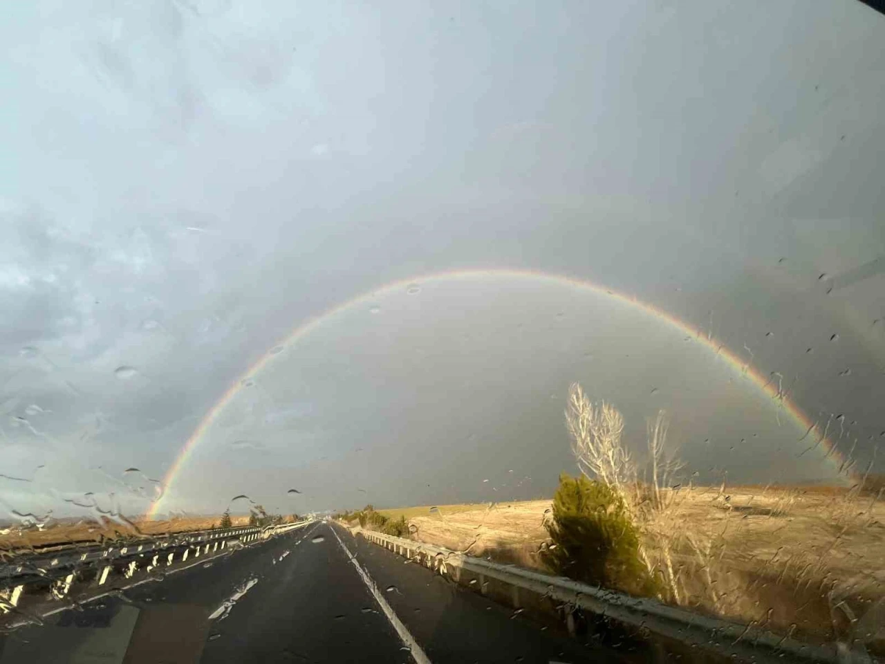 Eetkili olan sağanak yağışın ardından havanın açmasıyla ortaya çıkan renk cümbüşü, ilçenin birçok noktasından net bir şekilde görüldü. Gökyüzünü süsleyen dev gökkuşağı, izleyenlere adeta görsel bir şölen sunarken, o anlar vatandaşlar tarafından cep telefonu kameralarıyla kaydedildi. Gökkuşağını görüntüleyen vatandaşlardan Eren Dönmez, manzaranın büyüleyici olduğunu belirterek, iş çıkışı eve dönerken karşılaştığı bu muazzam görüntüyü ölümsüzleştirmek istediğini ifade etti.