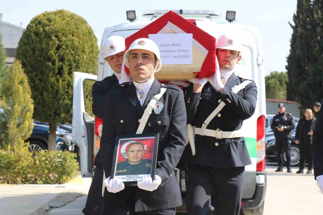 Denizli’de tedavi gördüğü hastanede yaşamını yitiren 2. Sınıf Emniyet Müdürü İsmail Orak’ın cenazesi düzenlenen törenin ardından memleketi Aydın’a gönderildi. 13 yıldır Denizli’de görev yapan 2. Sınıf Emniyet Müdürü, İl Emniyet Müdür Yardımcısı İsmail Orak, bir süre önce rahatsızlanarak hastaneye kaldırıldı. Kaldırıldığı hastanede tedavi altına alınan 48 yaşındaki Emniyet Müdürü Orak’a beyin kanaması teşhisi konuldu. Dün gece saatlerinde durumu fenalaşan Orak, doktorların tüm müdahalesine rağmen yaşam mücadelesini kaybetti. İşlemlerinin ardından vefat eden Emniyet Müdürü Orak’ın cenazesi İl Emniyet Müdürlüğü bahçesine getirildi. Burada düzenlenen törende Orak’ın öz geçmişinin okunmasının ardından dua edildi. Hayatını kaybeden Emniyet Müdürü Orak için düzenlenen törene Denizli Valisi Ömer Faruk Coşkun, 11’inci Komando Tugay ve Garnizon Komutan Vekili Piyade Albay Ertan Dabi, İl Jandarma Komutanı Albay Hıdır Ayçiçek, İl Emniyet Müdürü Yavuz Sağdıç, il protokolü ile Orak’ın ailesi ile mesai arkadaşları katıldı. Törenin ardından Orak’ın cenazesi, son yolculuğuna uğurlanmak üzere memleketi Aydın’ın Nazilli ilçesine gönderildi.
