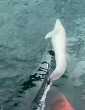 Tekirdağ Süleymanpaşa açıklarında denize açılan bir tekneyi bir süre boyunca takip eden yunus, cep telefonu kamerasıyla görüntülendi.
