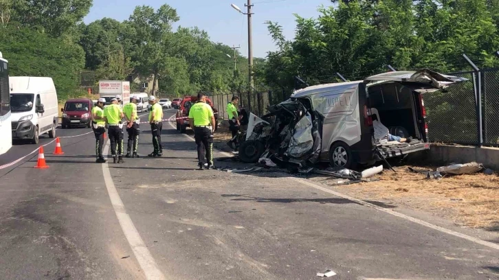 Ergene - Çorlu yolu üzerinde meydana gelen kazada, işçi taşıyan servis ile panelvan araç kafa kafaya çarpıştı. 2 kişi hayatını kaybederken, 10 kişi yaralandı. Kaza bölgesine ambulans ve itfaiye ekipleri sevk edildi.