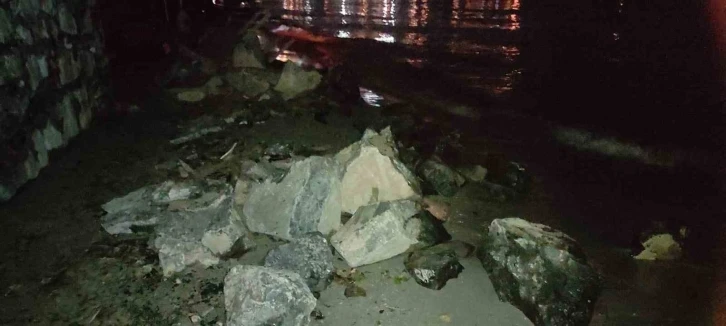 Tekirdağ’da etkili olan şiddetli yağış sebebiyle istinat duvarı çöktü.