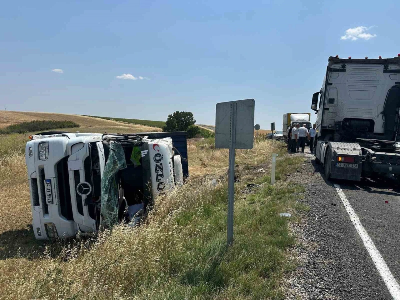 Tekirdağ’ın Muratlı ilçesi kırsalında kontrolden çıkıp tarlaya devrilen tırın sürücüsü yaralandı.