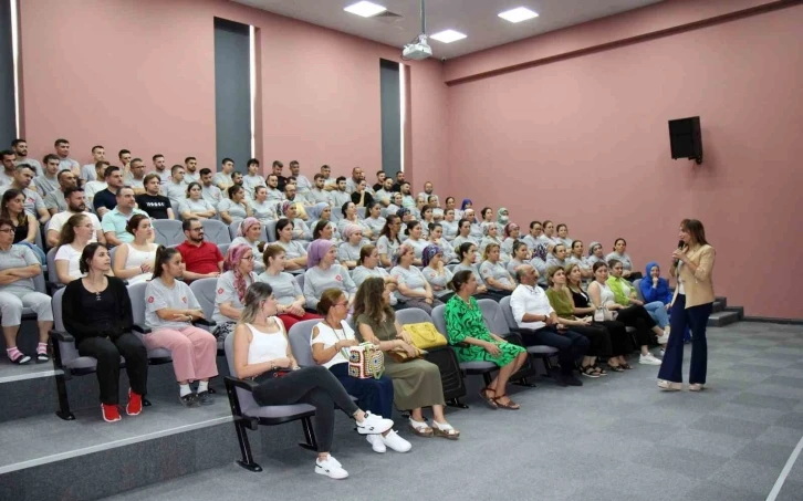 Denizli İl Sağlık Müdürü Uz. Dr. Berna Öztürk, “Aile Hekimlerimiz, kişinin anne karnına düştüğü andan ölünceye kadarki tüm sağlık verilerini kayıt altına alan, hasta olmadan daha sağlıklı bir yaşam sürmesini sağlayan, kronik hastalıklarını takip ederek yaşam kalitesinin artmasına yol gösteren hekimlerimizdir. Bu nedenle bir rahatsızlığı olmasa bile bireylerin yılda bir kez aile hekimliğine gitmesi, kontrollerini yaptırması çok önemlidir. Bireylerin sağlık hakkının temel bir bileşeni olan aşılama da, koruyucu hekimliğin üstlendiği en önemli görevlerinden biridir. Aşı ile bağışıklamada temel hedef; özellikle çocuklarda, aşı ile önlenebilir hastalıkların ortaya çıkışını engellemek ve bu hastalıkların sebep olduğu sekel ve ölüm oranlarını en aza indirmektir. Rutin aşılama programları sayesinde dünya genelinde aşıyla önlenebilir hastalıklar büyük ölçüde azaltılmıştır. Unutulmamalıdır ki bulaşıcı hastalıkları gelecek nesillere taşımamak için aşıları zamanında yaptırmalıyız. Öncelikle firmalarında çalışanların sağlık konusunda farkındalıklarının artması adına bizleri davet ettikleri için Yönetim Kurulu Başkanı Nuri beye çok teşekkür ediyoruz. Bu davet üzerine bugün Merkezefendi İlçe Sağlık Müdürümüz Uz. Dr. Mine Pulat’ın anlatımlarıyla Hepatiti, bulaşıcı hastalıklar ve aşılar konusunda firma çalışanlarımızı bilgilendirmek istedik. Covid döneminde ve öncesinde Denizli’de birçok firmamıza eğitimler düzenlemiştik. Bu eğitimlerimizi belirli aralıklarla talep eden tüm firmalarımızda sürdüreceğiz” dedi. Firma yetkilisi Nuri Turgut da Denizli İl Sağlık Müdürü Uz. Dr. Berna Öztürk ve ekibine teşekkür ederek böyle bir eğitimin firmada çalışanlarda sağlık konusunda güzel bir farkındalık oluşturacağını ifade etti. Turgut, sağlıklı bireylerin toplumların gelişmesi ve güçlenmesinde rolünün büyük olduğunu belirterek firma olarak her zaman sağlıkla ilgili bu tür etkinlikleri desteklediklerini, bu eğitimlerin devam edeceğini söyledi.