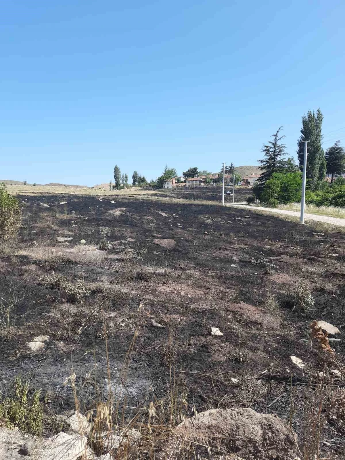 Eskişehir’de boş araziye atılan torpilin sebep olduğu yangın sonucu 15 dönümlük otluk alan kül oldu.