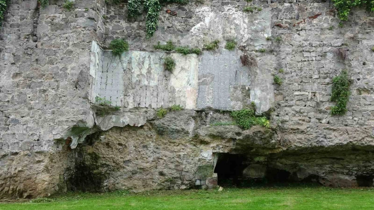 Trabzon Kalesi’nin tarihi surlarındaki fayanslar Trabzon Büyükşehir Belediyesine ait ekiplerin çalışması sonucu temizlendi.