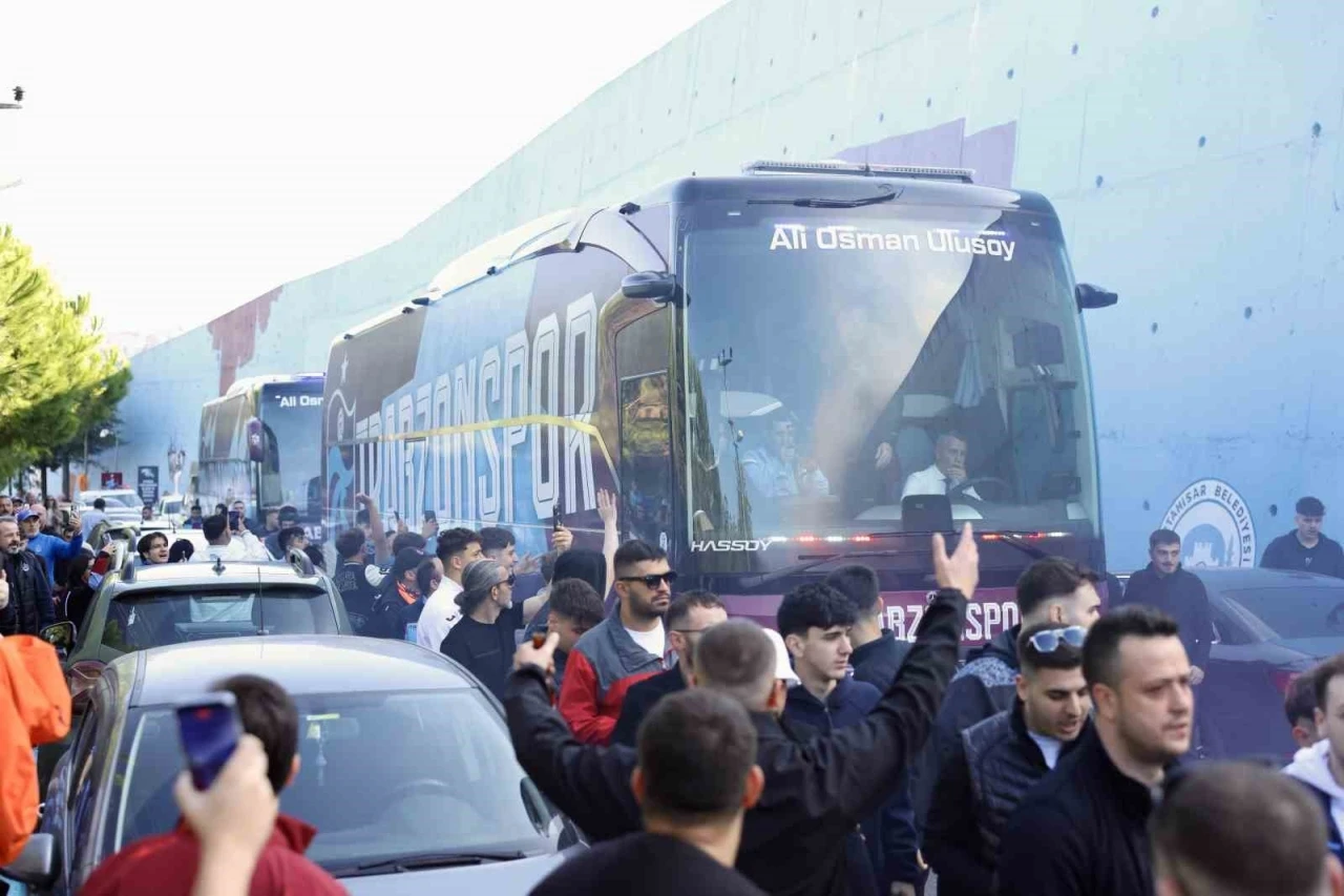 Trendyol Süper Lig’in 9. haftasında deplasmanda Çaykur Rizespor ile karşılaşacak Trabzonspor, hazırlıklarını tamamlayarak Rize’ye hareket etti. Bordo-mavili taraftarlar da deplasmana alınmamalarına rağmen takımlarını yalnız bırakmadı. Mehmet Ali Yılmaz Tesisleri’nde coşkulu bir uğurlama gerçekleştiren taraftarlar, meşaleler ve tezahüratlarla takımlarına destek verdi. Uğurlamada Başkan Ertuğrul Doğan ve Teknik Direktör Fatih Tekke de taraftarlarla bir araya geldi.
