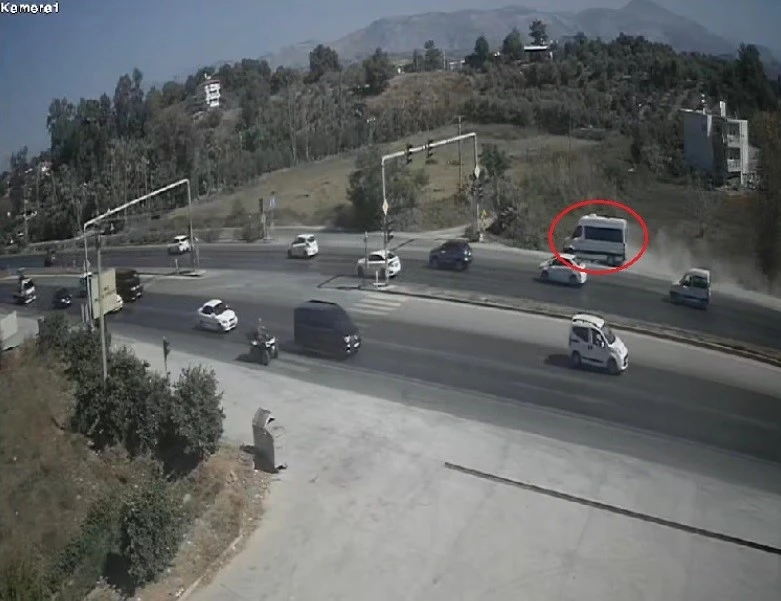 Antalya’nın Manavgat ilçesinde seyir halindeki tur minibüsü kırmızı ışıkta bekleyen araçları son anda fark ederek tozu dumana kattı. Tur minibüsü ışıkta bekleyen tur otobüsüne çarpmaktan son anda kurtulurken, şarampolde bir süre yoluna devam ettikten sonra tali yolda durabildi. O anlar ise güvenlik kamerasına yansıdı.