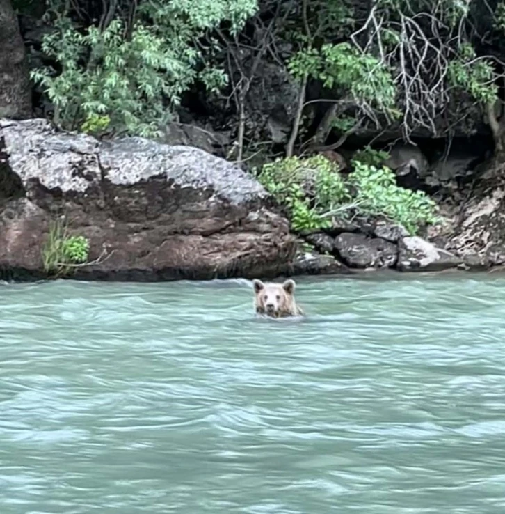 Munzur Vadisi Milli Parkı’na gezmeye giden Hasan Ozan ve Ömer Tanış, Munzur Çayı’na girerek serinleyen boz ayıya denk geldi. Ozan ve Tanış, önce çay kıyısında gezinerek yiyecek arayan ardından da Munzur Çayı’na girerek serinleyen boz ayının o anlarını cep telefonu kamerasıyla kayıt altına aldı.
