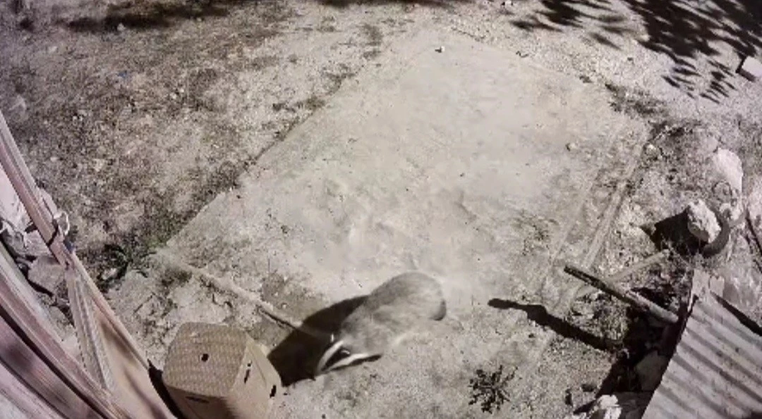 Elazığ’ın Keban ilçesine bağlı Gökbelen köyünde Selim Aslan’a ait evin önünde bal porsuğu ile sansar yiyecek ararken güvenlik kameralarına yakalandı.