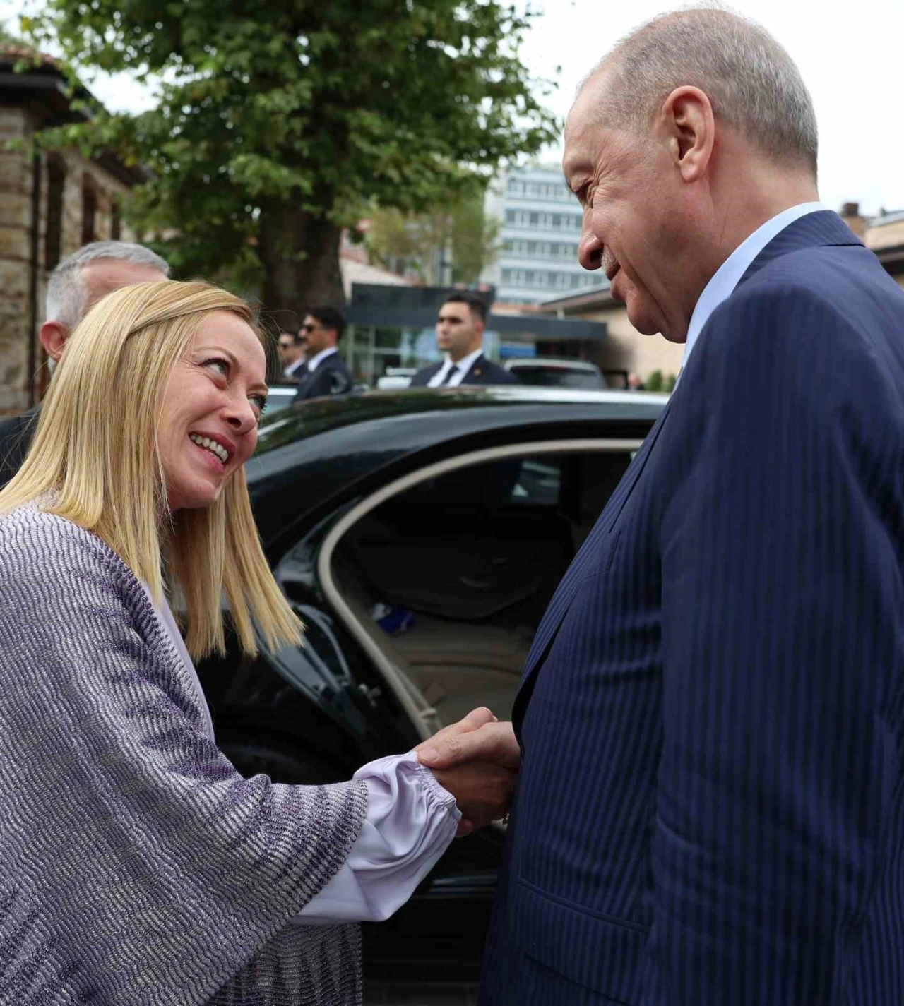 Cumhurbaşkanı Recep Tayyip Erdoğan, İtalya Başbakanı Giorgia Meloni ve Libya Milli Birlik Hükümeti Başbakanı Abdülhamid Dibeybe’yi İstanbul’da ağırladı. Cumhurbaşkanlığı Dolmabahçe Çalışma Ofisi’ndeki Türkiye-İtalya-Libya İş Birliği Zirvesi için Cumhurbaşkanı Erdoğan, liderleri ayrı ayrı karşıladı.