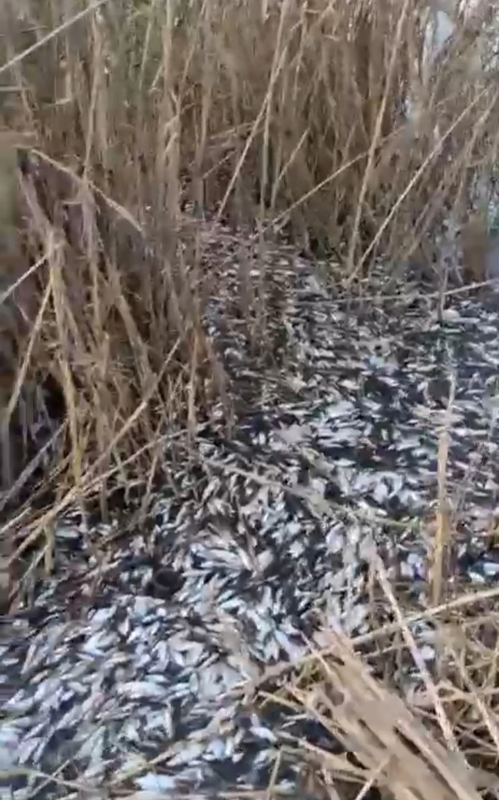 Bursa’nın Karacabey ilçesine bağlı Uluabat Köyü’nden geçen Uluabat Deresi’nde binlerce balığın ölü halde su yüzeyine çıktığını gören bir vatandaş, büyük şaşkınlık ve üzüntü yaşadı. Dere boyunca çok sayıda balığın hareketsiz şekilde su yüzeyinde olduğunu fark eden vatandaş, yaşananları cep telefonu kamerasıyla kayda aldı.