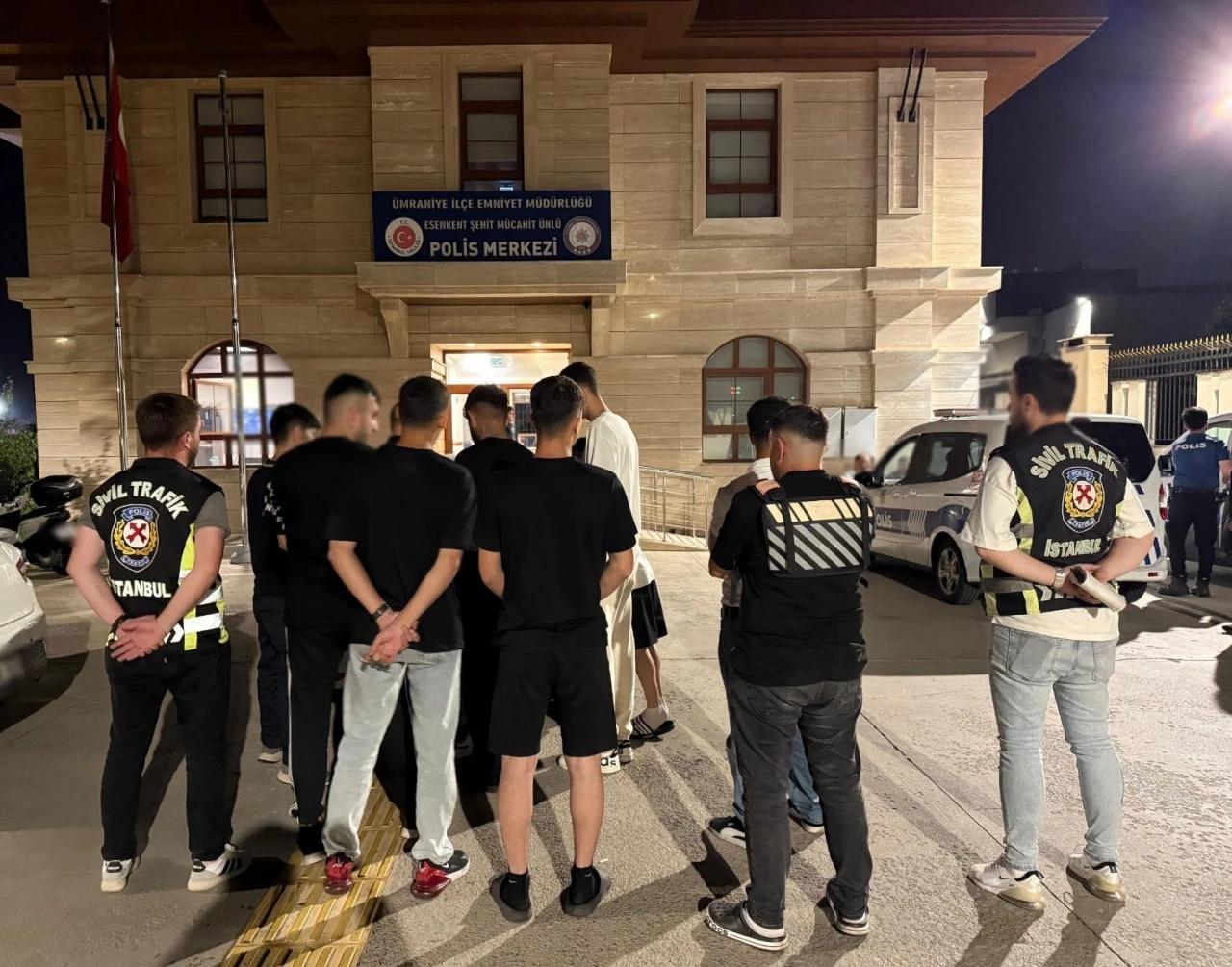 İstanbul Emniyet Müdürlüğü Trafik Denetleme Şube Müdürlüğünce, 6 Temmuz’da bazı sosyal medya platformlarında paylaşılan görüntülere yönelik inceleme yapıldı. Sanal Trafik Devriyesi çalışmaları kapsamında, araç sürücülerinin Ümraniye ilçesindeki bir alt geçitte konvoy yaparak trafik güvenliğini tehlikeye düşürdüğü tespit edildi. Yapılan çalışmalar doğrultusunda, araç plakaları sorgulanarak kimlik bilgileri tespit edilen A.Ö. (23), A.D. (16), H.H.Ö. (38), M.A. (19), T.K. (25), U.B. (22), H.B. (19), A.G. (17) ve F.A.S. (19) isimli şahıslar yakalandı.
