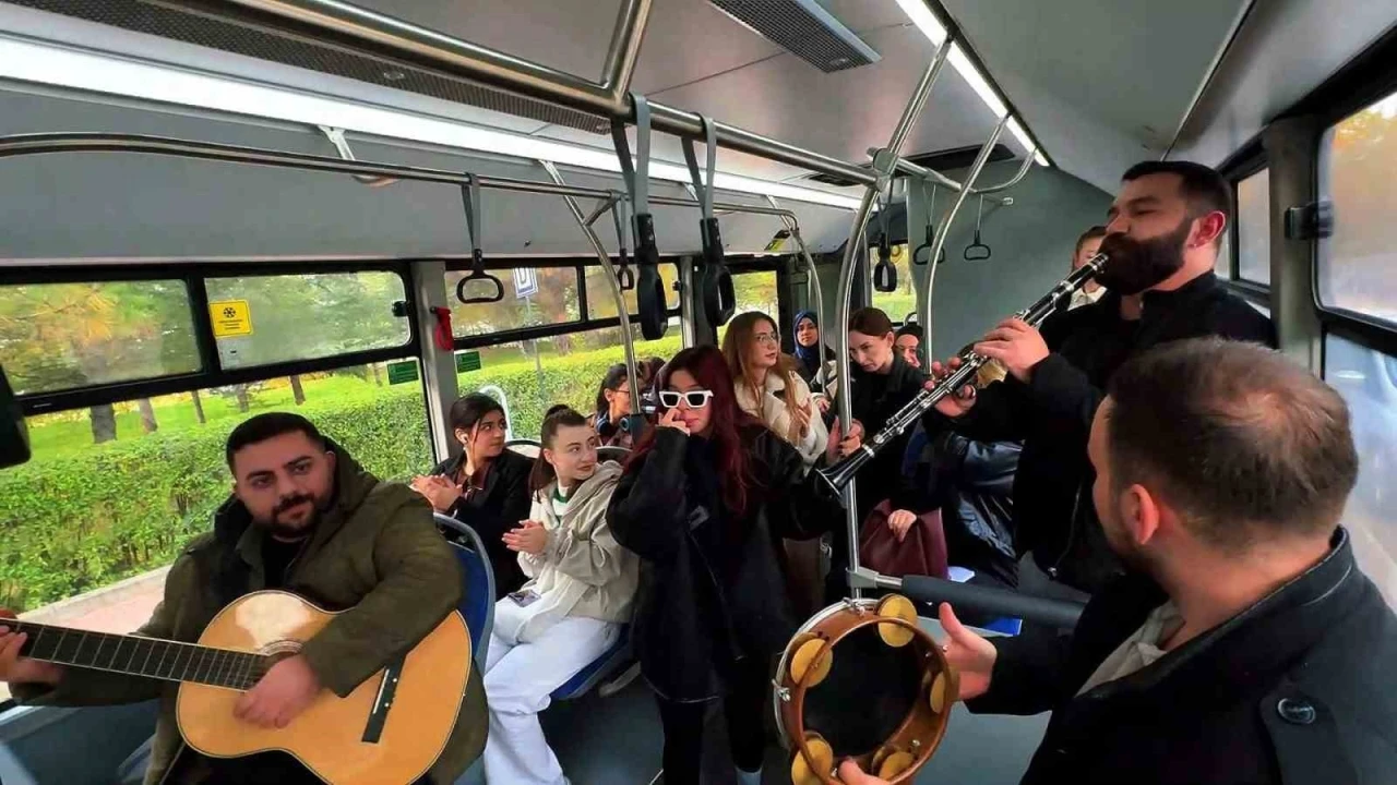 Karabük’te yurtlarda kalan ve vize haftasında ara sınavlara giden üniversite öğrencilerine moral vermek amacıyla Karabük Belediyesinin şehiriçi yolcu otobüslerinde Gençlik ve Spor İl Müdürlüğü tarafından canlı müzik sürprizi yapıldı.