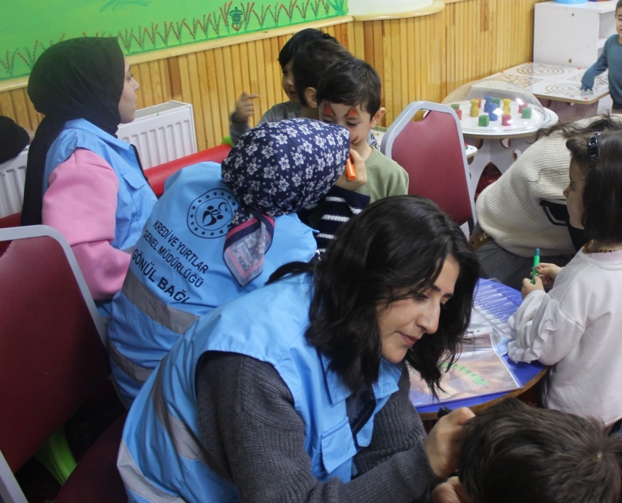 Çocuklarla oyunlar oynayan ve ikramda bulunan öğrenciler miniklere eğlenceli anlar yaşattı. Ziyaret sırasında kuran kursundaki çocuklarla vakit geçiren yurt öğrencileri daha sonra yanlarında getirdikleri ikramlıkları çocuklara servis etti.