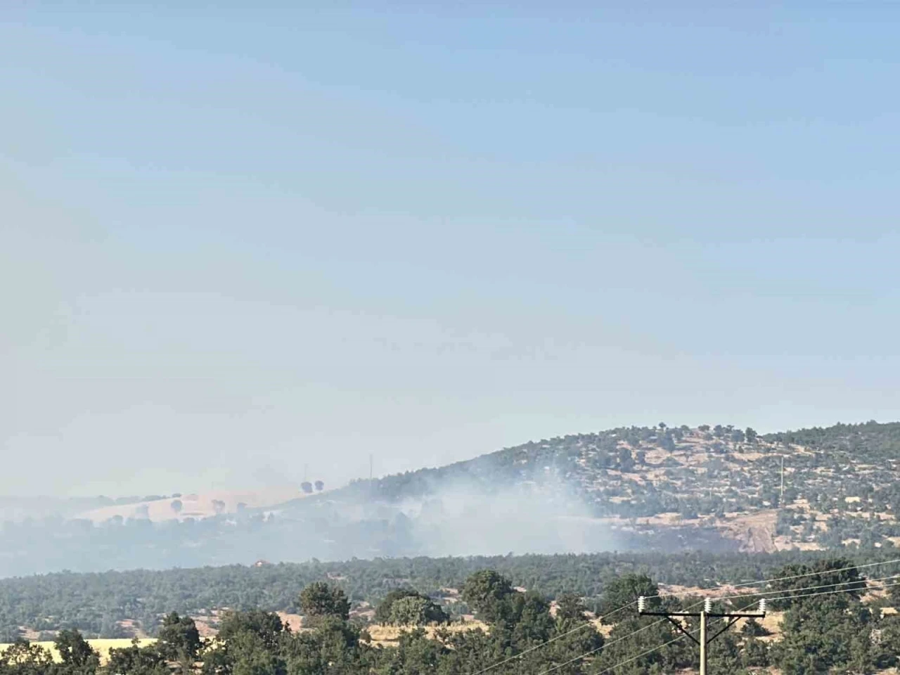 Uşak’ın Sivaslı ilçesinde meşelik alanda çıkan yangına karadan müdahale devam ediyor.
