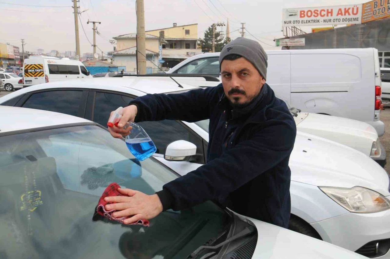 Alan, buzlu cama tuz dökmenin sileceklere zarar verebileceğini söyleyerek, “Sivas akşamları eksi onu görüyor gündüzleri de soğuk. Artık bu saatten sonra antifrizli cam suyu kullanmak lazım. Piyasada cam suyu çok ama bunun için önemli olan içindeki alkol oranı ve kaliteli cam suyu kullanmamız lazım. Alkol oranı yüksek olmazsa bir faydası olmaz. Ben sprey kutusuna tuzlu su doldurdum. Tuz oranı yüksek olacak, camdaki buzu çözmesi için. Buzlu cama direk tuz dökerlerse faydası olur ama bu sefer sileceğe zarar verebilir. Buda silecekte aşınmaya neden olur. En etkilisi tuzlu su” diye konuştu.