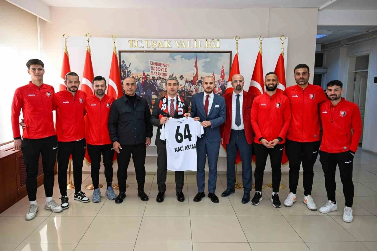 Öte yandan, Uşakspor heyeti Vali Aktaş’a kentin plakası olan 64 numaralı Uşakspor forması hediye etti.