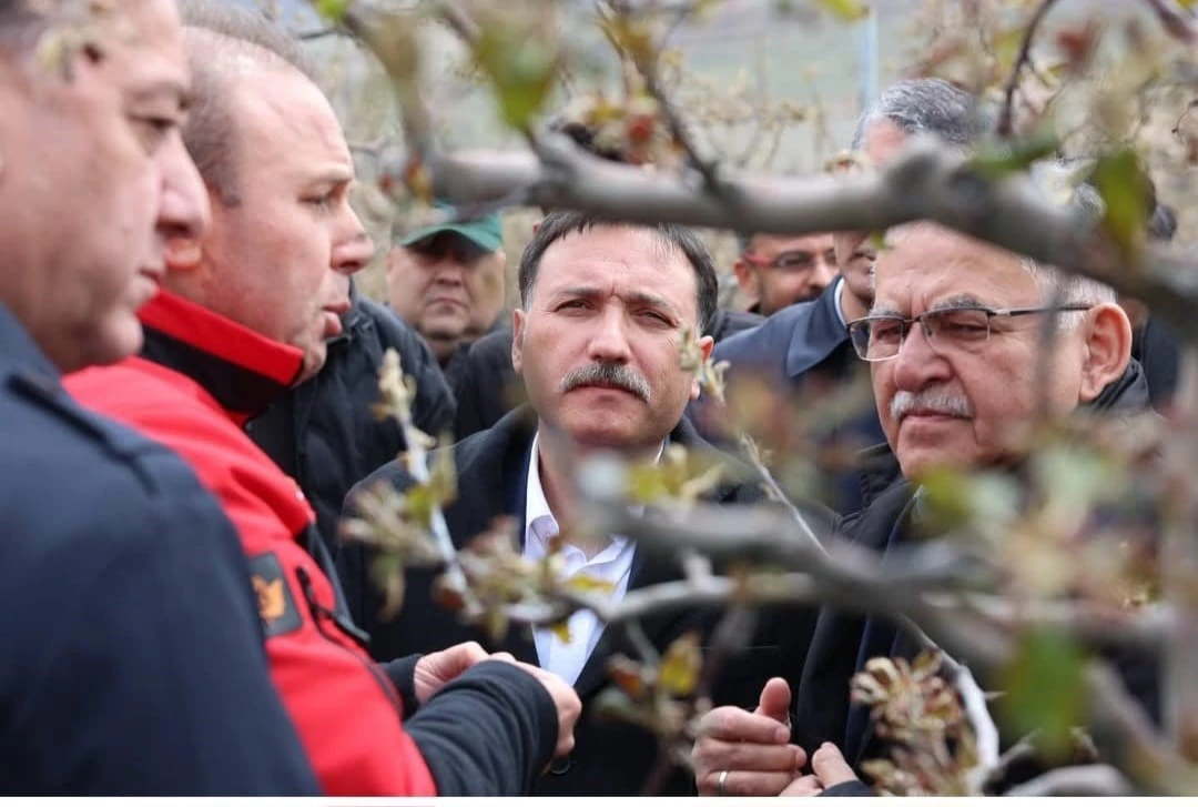 Kayseri Valisi Gökmen Çiçek ve Kayseri Büyükşehir Belediye Başkanı Memduh Büyükkılıç, zirai don dolayısıyla ağaçların zarar gördüğü Develi’de incelemelerde bulundu.
