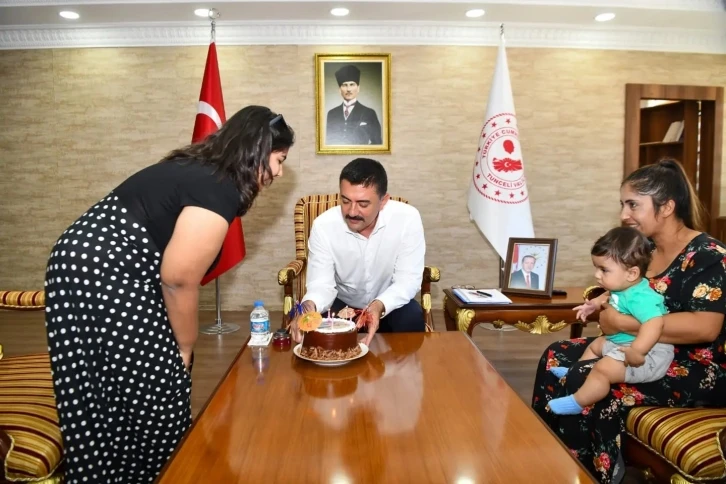 Sürpriz nedeniyle Vali Tekbıyıkoğlu’na teşekkür eden Hazal’ın doğum günü kutlamasına annesi Bahar ve minik kardeşi de katıldı.