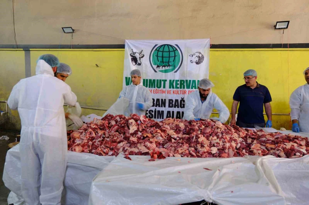 Bu yıl 19’uncusu düzenlenen geleneksel toplu kurban kesimi, Van Umut Kervanı İnsani Yardım Derneği’nin üye ve gönüllülerinin yanı sıra, vatandaşların da katılımıyla gerçekleşti. Kurban kesimi sabahın erken saatlerinde başladı. Kesimler, hijyenik şartlarda, uzman kasaplar eşliğinde, tekbir ve salavatlarla gerçekleştirildi. Ardından dernek gönüllülerince parçalanan kurban etleri özenle paketlenerek daha önceden tespiti yapılan ihtiyaç sahibi ailelere dağıtılacak.