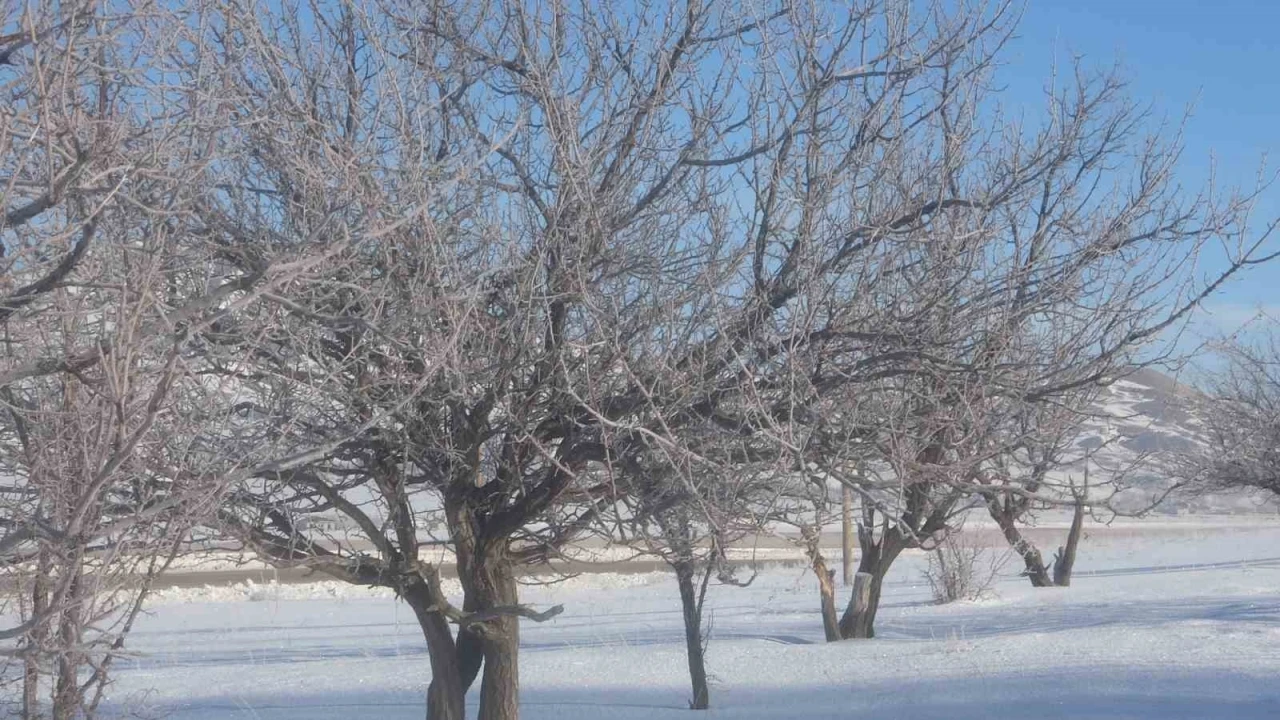 Van’da dondurucu soğuklar, tabiatı adeta beyaz bir örtüyle süslerken, gece hava sıcaklığının gece sıfırın altında düşmesiyle ağaçlar kırağı tuttu.