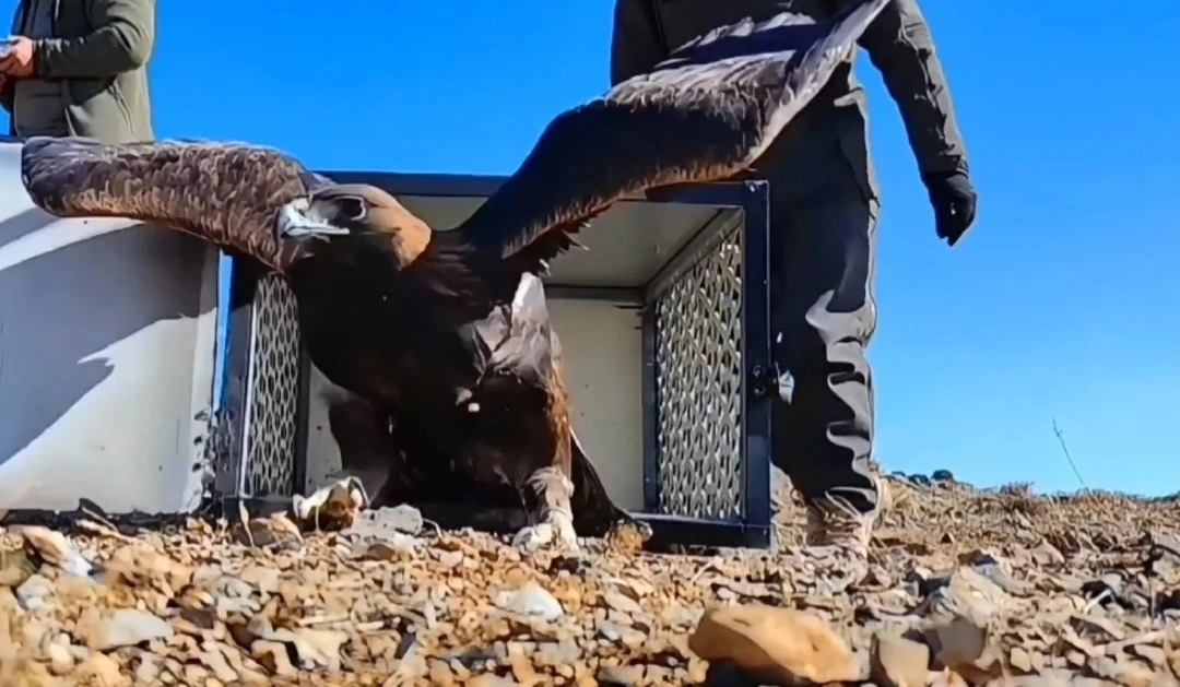 Hakkari’de doğada bitkin halde bulunan kaya kartalı, Van’daki tedavisinin ardından doğal yaşam alanına bırakıldı.