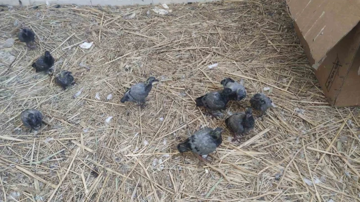 Van’ın Tuşba ilçesinde yıkılan metruk binada bulunan ve koruma altına alınan 20 yavru güvercin rehabilite ediliyor.
