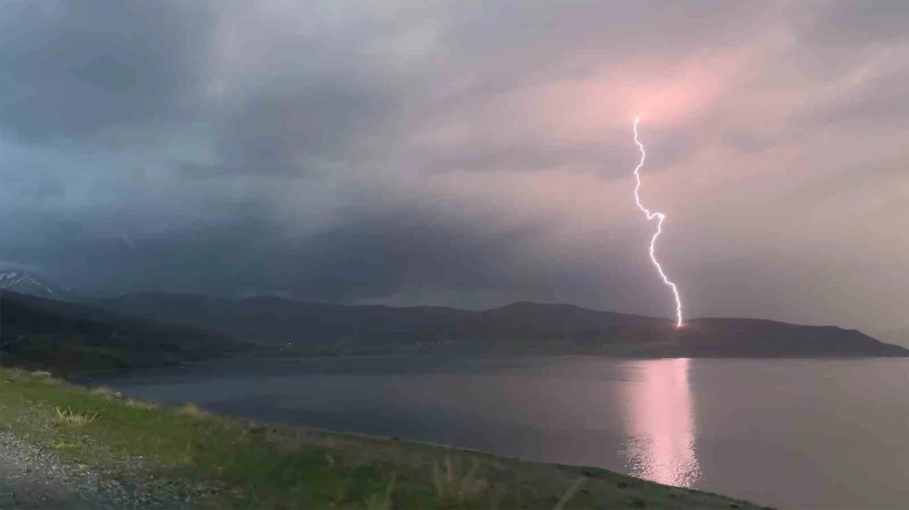 Nisan ayının sonlarına doğru Bitlis’te etkili olan yoğun yağış ve şiddetli yıldırım, Van Gölü üzerinde adeta görsel bir şölen oluşturdu. Ancak bu etkileyici manzara, zaman zaman korku dolu anlara da sahne oldu.