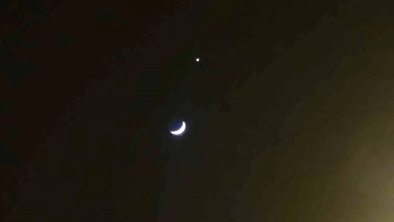 Van’da, akşam saatlerinde gökyüzünde meydana gelen eşsiz bir doğa olayı, birçok kişi tarafından dikkatle izlendi. Hilal şeklindeki ay, Venüs gezegeniyle buluşarak Türk bayrağındaki ay-yıldız figürünü andıran bir görüntü oluşturdu. Bu özel an, gece gökyüzünde yaklaşık 2 saat boyunca izlenebilirken, gökyüzü severlerin ilgisini çekti.