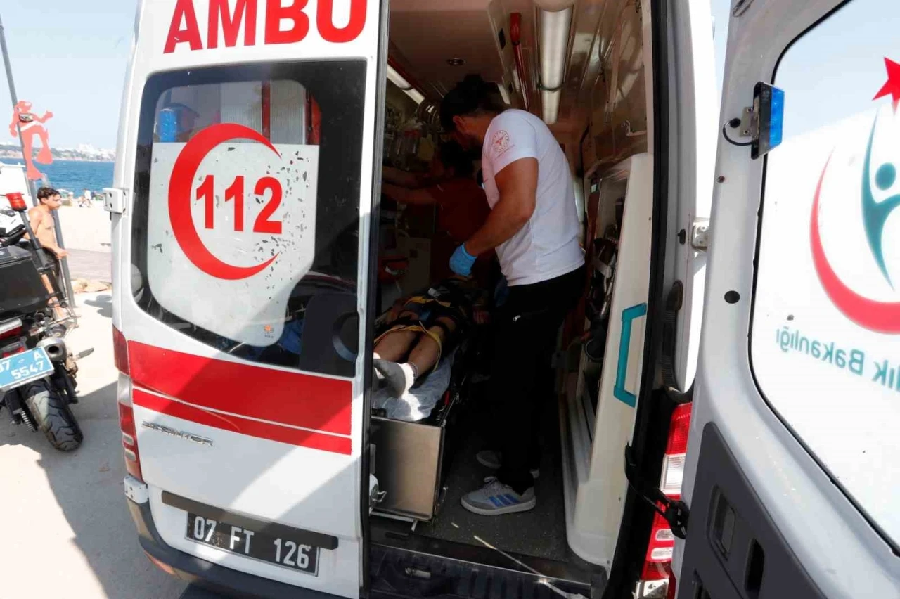 Antalya’da arkadaşı ile birlikte denize gelen 15 yaşındaki çocuğun kafasına, varyantın üst kısmından aşağı atılan scooter düştü. Yaralanan genç hastaneye kaldırıldı.